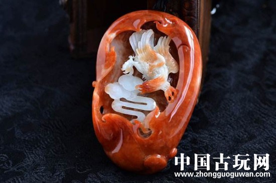 鉴别红翡和烧红翡可以看颜色,红翡颜色丰富,有红色、暗红色、棕红色、橙红色、褐红色等较纯的色泽。烧红翡的颜色虽然比较艳丽,但因为经过了优化,看上去显得呆板了许多。