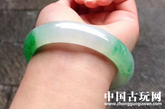 将手电筒从正面照射翡翠,可以观察戴翡翠的颜色。颜色深浅不一,分布不均,裂纹处颜色较浅的是真翡翠,颜色均匀统一,不自然,裂纹处颜色较深的是假翡翠。