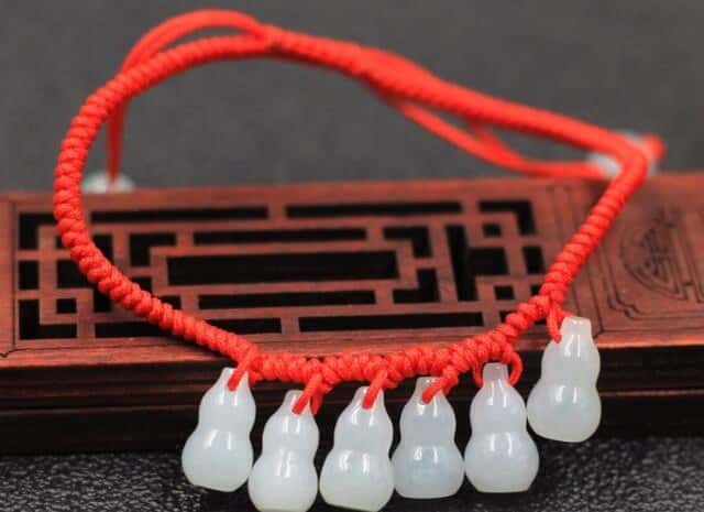 绳子与翡翠相结合,构成脚链。此类款式市场上常见。即,翡翠多有孔眼,用绳子将翡翠串起,翡翠的样式,与款式仪的类似,可以是单颗翡翠,也可以是多颗一起串起,构成脚链。链子为绳子,最常见的颜色为红色,在中国,红色寄予了吉祥,喜庆,有祈福,避邪等美好祝愿,因此,通常人们较青睐于红色的绳子,但是针对个人特性的要求,也可以采用其他颜色的绳子,比如藏青色,黑色等。