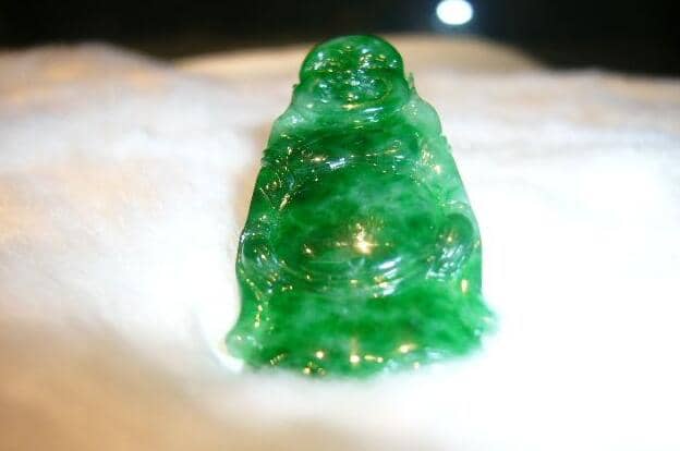 6、火烧。用火稍微灼烧能看到翡翠表面的薄膜有没有发生变化,会变色变形的就是镀膜的。