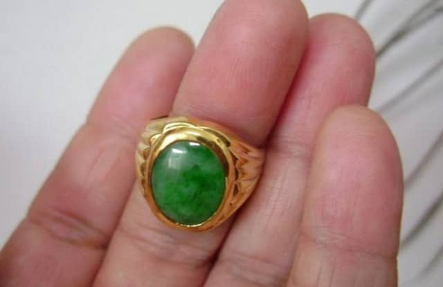 黄金翡翠戒指是有男女之分的,接下来这个就是比较好的男士戒指,它叫黄金翡翠男士戒指,它与其他黄金翡翠戒指不仅仅是名字上的区别,还有它的整体造型、戒面大小、戒指形态等等都不一样。