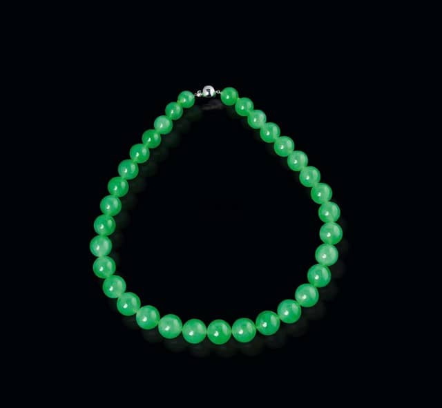 2、圆珠直径大好的珠链,对于珠子的大小要求都是比较高的。要想找到足够多的直径大的、种水和颜色都很均匀的珠子来制作一串珠链更是一件非常困难的事情。珠子的品质越好,直径越大,它的价格以及收藏价值就更高。
