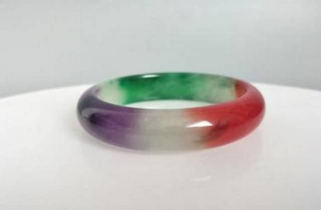我们说的五彩翡翠就是福禄寿喜财翡翠,是五种颜色的结合,也叫“五福临门”。五彩翡翠的色彩搭配是:绿色、红色、黄色、紫色和白色的结合,红色代表“福气”,绿色代表“禄”,黄色代表“财”,紫色代表“喜”,白色代表“寿”。