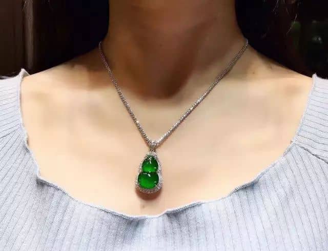 首先,对于块头比较小的翡翠挂件,规格大概是2*2cm,或者更小的,种色也比较好的话,最好还是打个K金扣,然后用K金项链穿起来,这样戴起来会比较好看;如果是大于这个规格的话,再加上一些厚度,就会显得链子和翡翠挂件的匹配度不够,挂件过重的话,链子对皮肤的压力也大,会勒脖子。这样的小巧玲珑的翡翠挂件配上这种精致的金链子,其带来的感觉自然也是不言而喻的,所以说如果是小的翡翠,那么自然也是要选择这种比较精致的挂绳了。