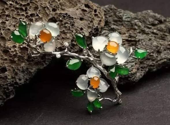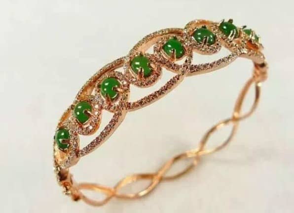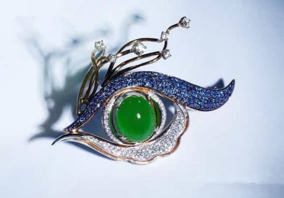 经过以上几道工序,一件精美的翡翠镶嵌饰品就诞生了。精巧的翡翠镶嵌工艺结合了东方的古典与西方的时髦元素,愈加凸显出翡翠的魅力。金属的光泽调和地融人其间,与翠色交相辉映,町以透露出高雅时尚的气息。