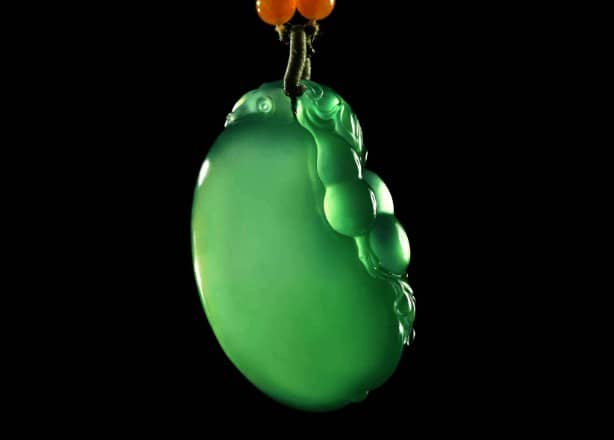 龙石种算得上是罕见的翡翠品种,其翡翠绿色都溶化在地内,因此表现出的绿色显得很是均匀,其色跟地有着很协调的配合,色调有很好的特点,既不会浓,也不会淡,根本看不到色根。