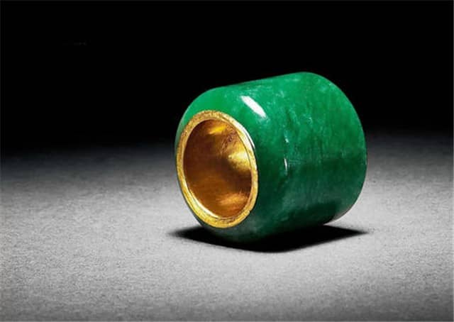 各位翠友们在文玩市场上,经常所见的扳指都是单一材质制作而成。但是在清代皇室的翡翠扳指,则是喜欢内胆以黄金进行打造。