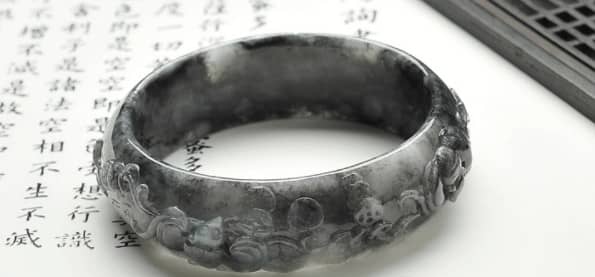 乌鸡种翡翠的特点,就是带有黑色的斑点,因为它看起来和乌鸡的皮很像,所以才得此名。它的矿物成分以硬玉为主,同时还含有一定的黑色物质,呈现不透明到半透明状态。