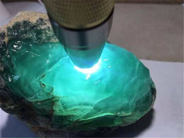 大马砍多为黄沙皮、白沙皮,最着名的水石就是大马砍场口,其皮壳光滑圆润,质地晶莹,种老起莹光,易出顶级玻璃种翡翠,所以有人说玻璃种翡翠大马砍第一。