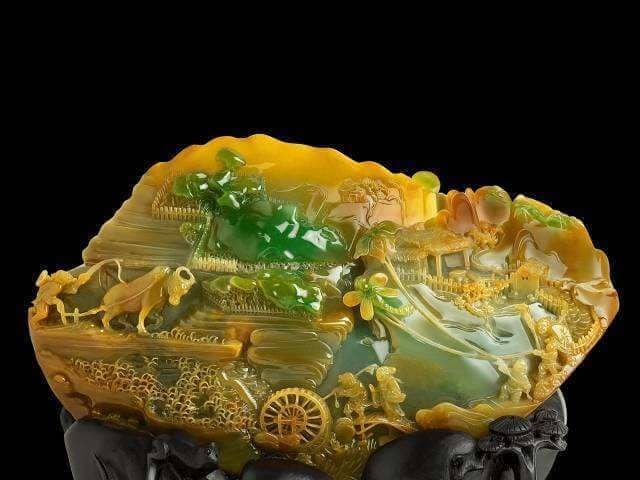 最重要的一点就是,烧黄翡翠的颜色,在放大镜的观察下,会有规则分布的细小闪光点,它们就像爆米花一样。事实上,这是人们在处理翡翠的过程中,它的晶体颗粒发生炸裂现象所致。