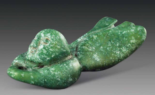 酒泉玉,产于甘肃酒泉,硬度4~7度,结构紧密、细微、色泽鲜丽、柔和。流行于商朝时期。