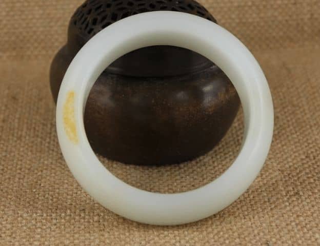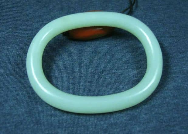 这种和田玉手镯的一个最主要的特点就是:内平外圆。这种设计可以说从一定程度上节省了玉料,而且从审美上看,现代人也最喜欢这种款式的和田玉手镯。