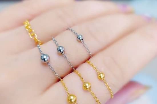 小金珠一般不会单独的进行制作售卖,大多数都是经过编织和搭配,运用在指环、手链上进行配饰装扮。在后来的发展中,小金珠也被用在项链、手机链上,比如金项链的间珠盒仔链。