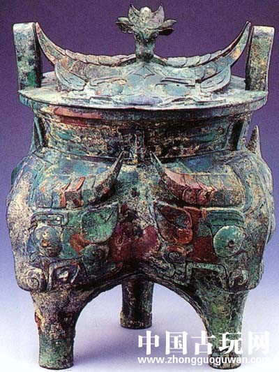 西周早期,高33厘米,口径22.9厘米。1975年北京房山琉璃河黄土坡村出土,现藏首都博物馆。为炊煮或盛食器,三袋足,腹作双眉翘起的兽面纹,二直耳,有盖,盖上铸相背的两个高浮雕兽面,双角弯翘起,以圆雕兽首为盖钮。铭文四行十九字,内容记燕候赏赐伯矩贝事。此鬲装饰以平雕、高浮雕和圆雕饰相结合,使器形增强了浑厚雄丽感,在同类器中是难得见到的精品。因出土在西周燕国贵族墓地,故铭文是研究西周初年燕国历史与地理的重要资料。