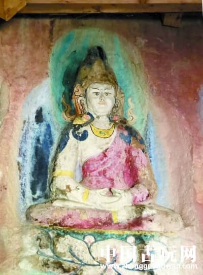 该遗址位于白玉县登龙乡邦邦村,造型独特,当地民间相传为文成公主入藏时留下的遗迹。故宫博物院藏传佛教文物研究所所长罗文华告诉记者,邦邦石刻造像与昌都、玉树、石渠发现的吐蕃石刻造像非常接近,由一佛四菩萨五尊造像构成。造像虽残损,仍能看出头部有圆桶形缠发,戴三叶冠,着菩萨装,全跏趺或游戏坐姿坐于莲花座上,为较典型的吐蕃时期造像。