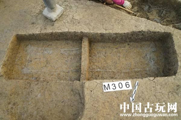 其它五座墓所显示出的葬具朽痕,平面上皆略成“井”字形,侧壁竖直,底平,判断是有一定木作结构的板棺。这其中需要注意的是M306,从剖面看,其侧板向下延伸,而底板悬起,与后世楚墓中多见的“悬底棺”相类似。(图七――图十一)