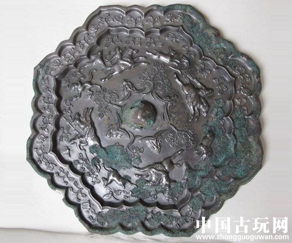 隋唐时期铜镜的制作更加精工,是铜镜铸作的再盛时期,镜的种类也繁多,新出现葵花镜、菱花镜等,纹饰有人物故事、猎狩骑射、海兽葡萄、十二生宵、宝相花等,同时还出现了极其珍贵的金银平脱螺钿镜。