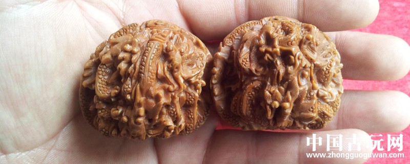 盘玩龙纹核桃前需要先刷洗干净表面,再坚持每天盘玩1~2个小时。在核桃表面包浆硬化后,采取盘放结合的方式,三个月左右就能形成稳定的包浆。还可以用塑料袋封住核桃再用手抓,让手部汗液和核桃结合,让它更快上色,形成浑厚美丽的包浆。
