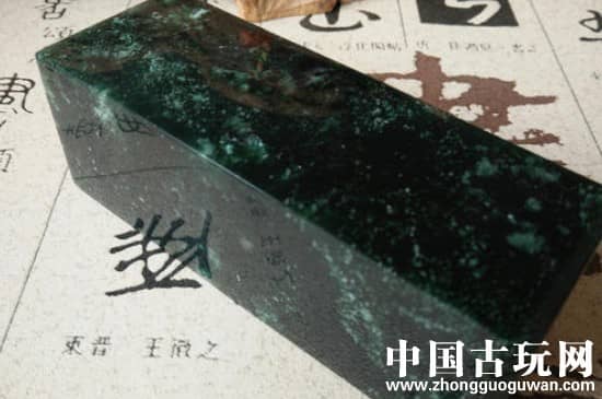 岫玉180的色彩是绿色或者浓绿色的,跟啤酒瓶的颜色相似。岫玉501的颜色是墨绿色,有的甚至是黑绿色的,抛光之后跟古代的青铜器的颜色相近,所以又称为青铜玉。